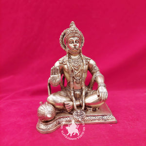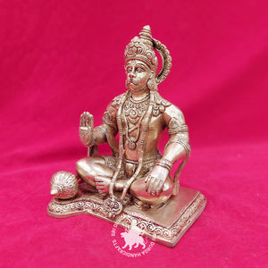 Constructed from high-quality brass, the idol showcases exquisite craftsmanship and a lustrous finish that adds an aura of elegance to any space. The intricate features, from Hanuman's muscular form to his benevolent expression, are a testament to the artisan's skill in bringing the divine to life.