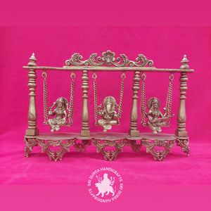 Aesthetic Marvel: Beyond its spiritual significance, the 12-inch Brass Lakshmi Ganesh Saraswathi Oonjal Idol is a visual marvel. Its intricate detailing and polished brass surface make it an exquisite addition to any decor style. It effortlessly marries spirituality with aesthetics, enhancing the ambiance of your living space.
