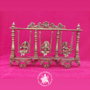 Elevate your spiritual space with the divine presence of our 12-inch Brass Lakshmi Ganesh Saraswathi Oonjal Idol. Crafted with unwavering devotion and masterful precision, this exquisite brass idol encapsulates the divine trinity of Hinduism, representing prosperity, wisdom, and success.