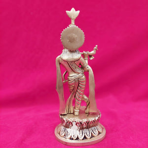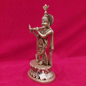 Aesthetic Appeal: Beyond its spiritual significance, the 12-inch Brass Lotus Base Krishna Idol is a captivating work of art. Its intricate detailing and polished brass surface make it a visual delight. Lord Krishna's serene expression and the fluidity of his pose evoke a sense of divine bliss.