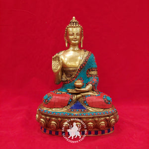 Aesthetic Appeal: Beyond its spiritual significance, the 14-inch Brass Sitting Buddha Color Idol is a visual delight. The careful addition of color enhances the beauty of the sculpture and complements a wide range of decor styles. It is a captivating blend of spirituality and aesthetics.