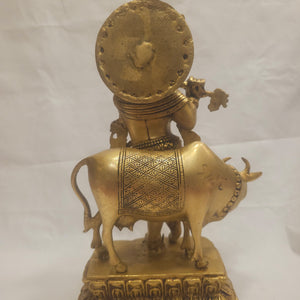 14" inch Brass Lord Krishna with Cow Idol