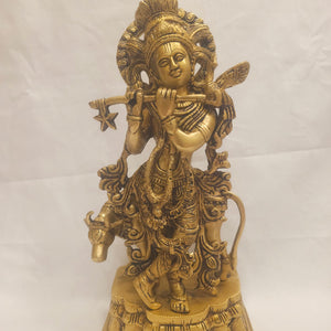 This beautiful 15 inch Brass Krishna Idol is a stunning addition to any home. Hand-crafted from high-quality brass, this idol depicts the Hindu deity Krishna in a traditional form, with intricate detailing and a elegant finish. Display this idol in your home for a touch of spirituality and cultural appreciation.