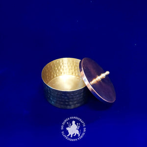 2" inch Brass Hammered Dabba With Copper Lid (M) (2643) Gift Item
