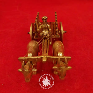 The weight of 850 grams adds a substantial feel to the brass bullock cart, making it not just a decorative item but a tangible piece of art that pays homage to the historical and agricultural traditions of India.