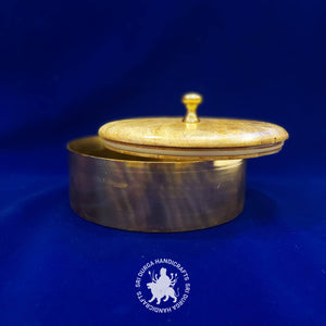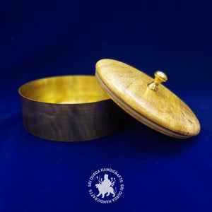 Elevate your gift-giving experience with the 3-inch Brass Rotti Dabba with Wooden Lid – a distinctive and functional gift item that seamlessly combines the richness of brass with the warmth of natural wood. Order this unique Rotti Dabba today and surprise your loved ones with a gift that exudes elegance and showcases the artistry of fine craftsmanship.