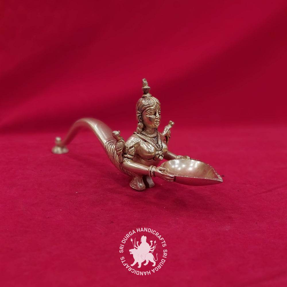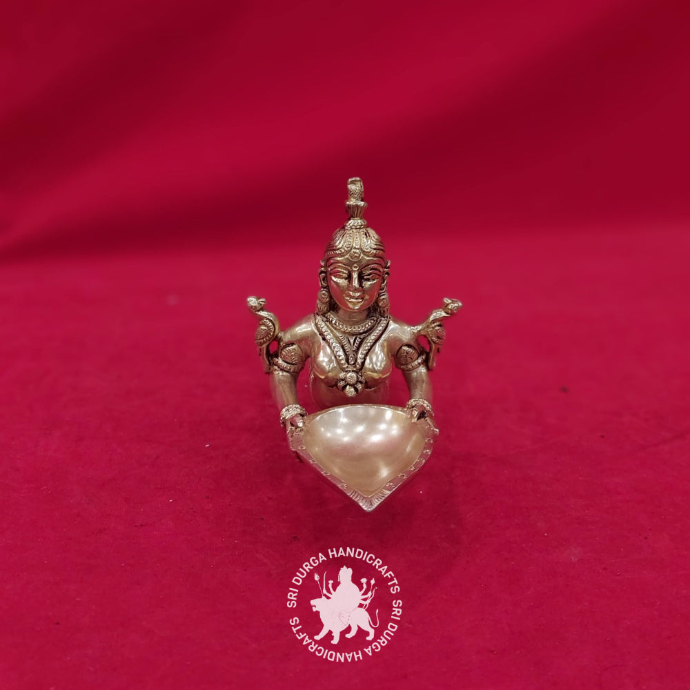 Whether you are a devout follower seeking a sacred representation or an appreciator of cultural heritage, the 4-Inch Brass Paavai Villaku with Handle is a timeless and meaningful addition to your spiritual sanctuary. Light it with reverence, and let the warm glow create an atmosphere of divine grace and cultural connection.