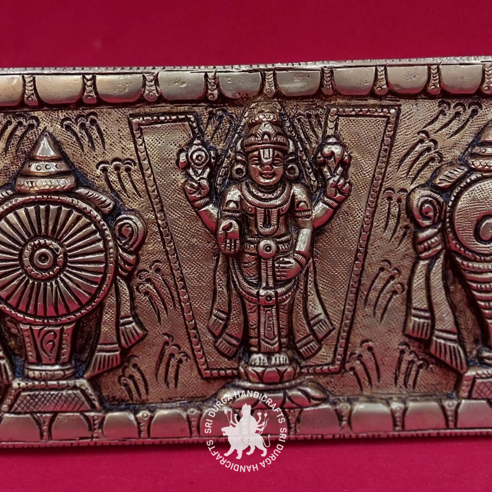 Embrace the divine presence of Lord Tirupati Balaji with the 5-Inch Brass Wall Plate—an exquisite representation that adds spiritual elegance and sacred energy to your living space. May the conch and chakra symbols bring purity, protection, and cosmic blessings into your home.
