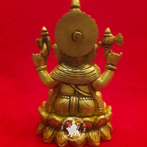 This beautifully crafted 6 inch Brass Kamal Ganesh Idol is a perfect addition to any home or altar. Made from high-quality brass, this idol features intricate details and a stunning design. Invoke blessings and prosperity with this divine piece.