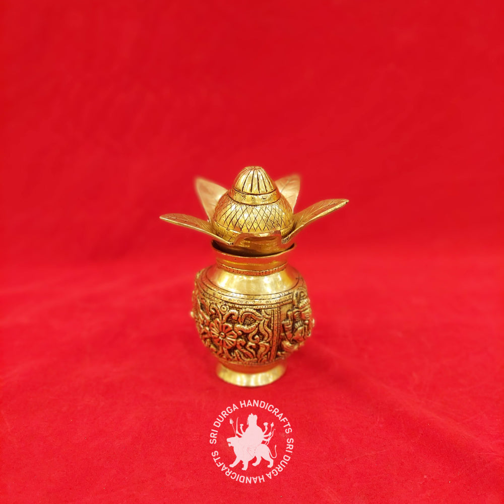 Introducing the 6-inch Brass Open Antique Kalasam Idol – a stunning and spiritually significant masterpiece that embodies the essence of divine grace and tradition. Meticulously crafted with reverence and attention to detail, this exquisite idol serves as a symbol of auspiciousness and spiritual connection, enriching your home, temple, or sacred space.
