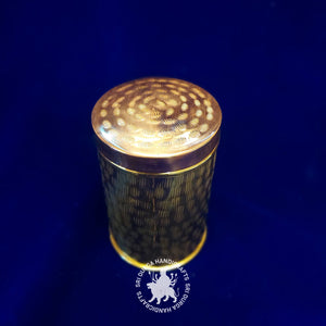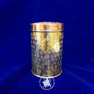 Design: Standing at a convenient 6 inches in diameter, this round box boasts a striking hand-hammered texture that adds an earthy yet sophisticated touch. The hammered brass body captures the artisan's dedication to creating a piece that combines artistry and functionality seamlessly. The lid fits securely, preserving the contents within while enhancing its visual appeal.