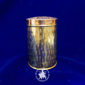 Design: Standing at a convenient 6 inches in diameter, this round box boasts a striking hand-hammered texture that adds an earthy yet sophisticated touch. The hammered brass body captures the artisan's dedication to creating a piece that combines artistry and functionality seamlessly. The lid fits securely, preserving the contents within while enhancing its visual appeal.
