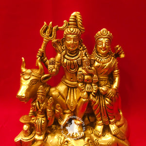 Introducing the 6-inch Brass Sivan Family Idol – a divine representation of Lord Shiva, his beloved consort Goddess Parvati, and their divine son Lord Ganesha. Crafted with exquisite attention to detail and reverence, this idol captures the essence of familial love, harmony, and spiritual devotion.