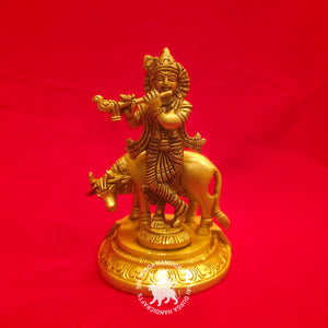 This 7 inch Brass Krishna with Cow Idol is expertly crafted with intricate details. The idol is a perfect addition to any home, bringing spiritual energy and blessings. Made of high-quality brass, it is durable and visually stunning. A must-have for those seeking to enhance their spiritual practice.