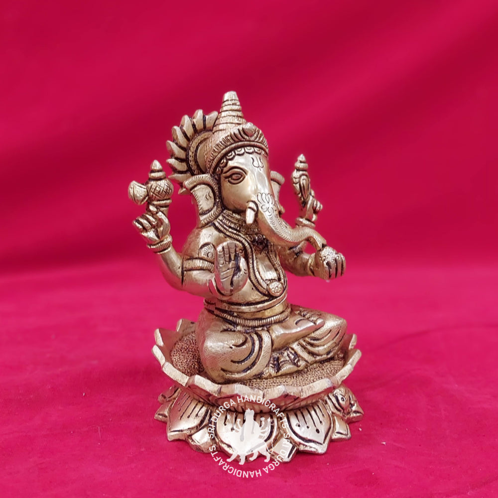 7" inch Brass Lotus Ganesh Idol
