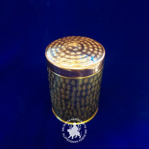 Design: Standing at a convenient 7 inches in diameter, this round box boasts a striking hand-hammered texture that adds an earthy yet sophisticated touch. The hammered brass body captures the artisan's dedication to creating a piece that combines artistry and functionality seamlessly. The lid fits securely, preserving the contents within while enhancing its visual appeal.