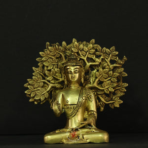 Material: Crafted from high-quality brass, this Tree Buddha Idol is a shining example of the timeless elegance and durability of this traditional metal. Brass not only exudes a warm, golden glow but also promises longevity, ensuring that this magnificent piece remains a cherished focal point of your decor for years to come.