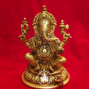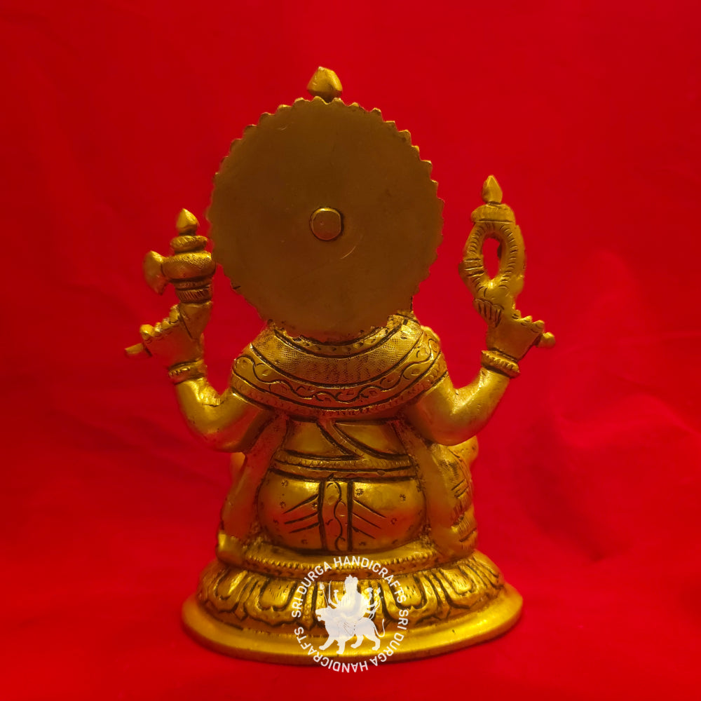 This 8 inch brass Ganesh idol is a stunning addition to your home decor. Crafted with intricate details, it sits on a round base for stability. Bring blessings and positive energy into your space with this exquisite spiritual piece.
