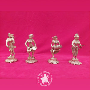 Design: This set includes three idols, each measuring 8 inches in height, portraying classical Indian musicians playing traditional instruments. The intricate detailing captures the essence of their vibrant attire, musical instruments, and the spirit of their art. The composition radiates a sense of unity, harmony, and cultural richness.