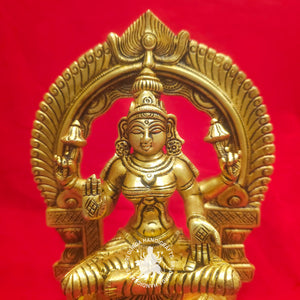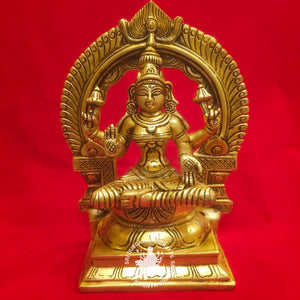 This expertly crafted 9 inch brass Lakshmi idol is presented in a beautiful frame. Made from quality brass, this idol showcases intricate details and stunning craftsmanship. Perfect for worship or as a decorative piece, it brings peace and prosperity into any space.
