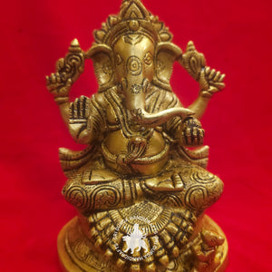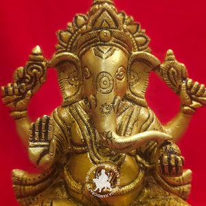 Elevate your home décor and spirituality with our 9 inch Gold Finish Brass Ganesh Idol. This beautifully crafted piece not only adds sophistication and luxury to your space, but also brings positive energy and blessings. Made with intricate details, this exclusive idol serves as a stunning work of art.
