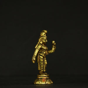 Invoke divine grace and devotion with the Graceful Aandal Brass Idol. Aandal, one of the twelve Alwars and a revered devotee of Lord Vishnu, is known for her unwavering love, devotion, and poetic hymns dedicated to the Lord. This beautifully crafted brass idol captures her essence of divine femininity, purity, and eternal love, making it a perfect addition to your home altar, temple, or prayer space.