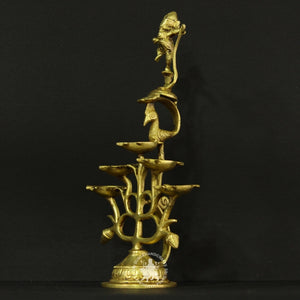 Celebrate light, joy, and new beginnings with the vibrant Dancing Ganesh Tree Deep, a beautifully handcrafted brass diya stand featuring Lord Ganesha in a dynamic dancing pose beneath a stylized tree canopy. This artistic piece merges divine symbolism with traditional craftsmanship, making it a perfect spiritual accent for your home, temple, or festive décor.