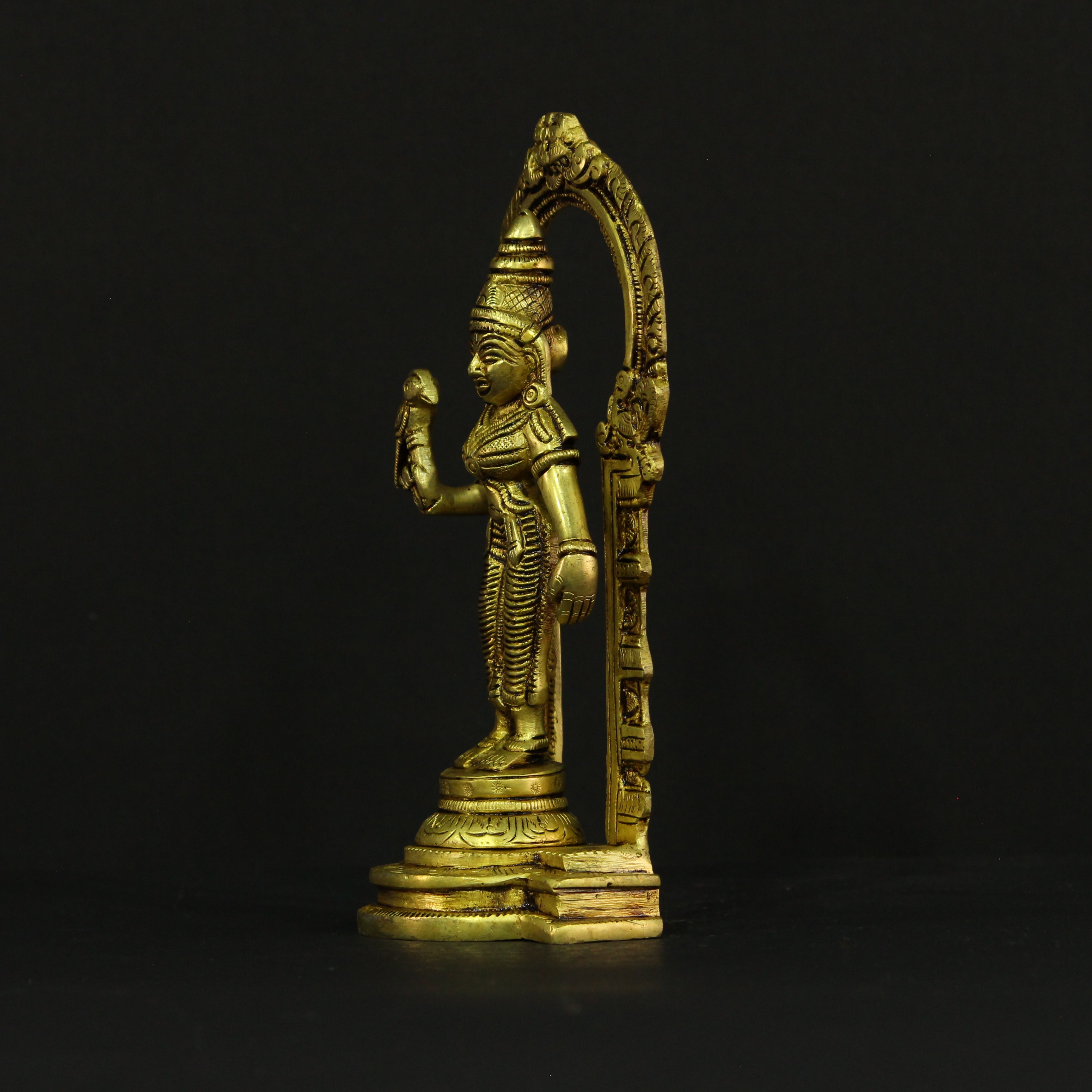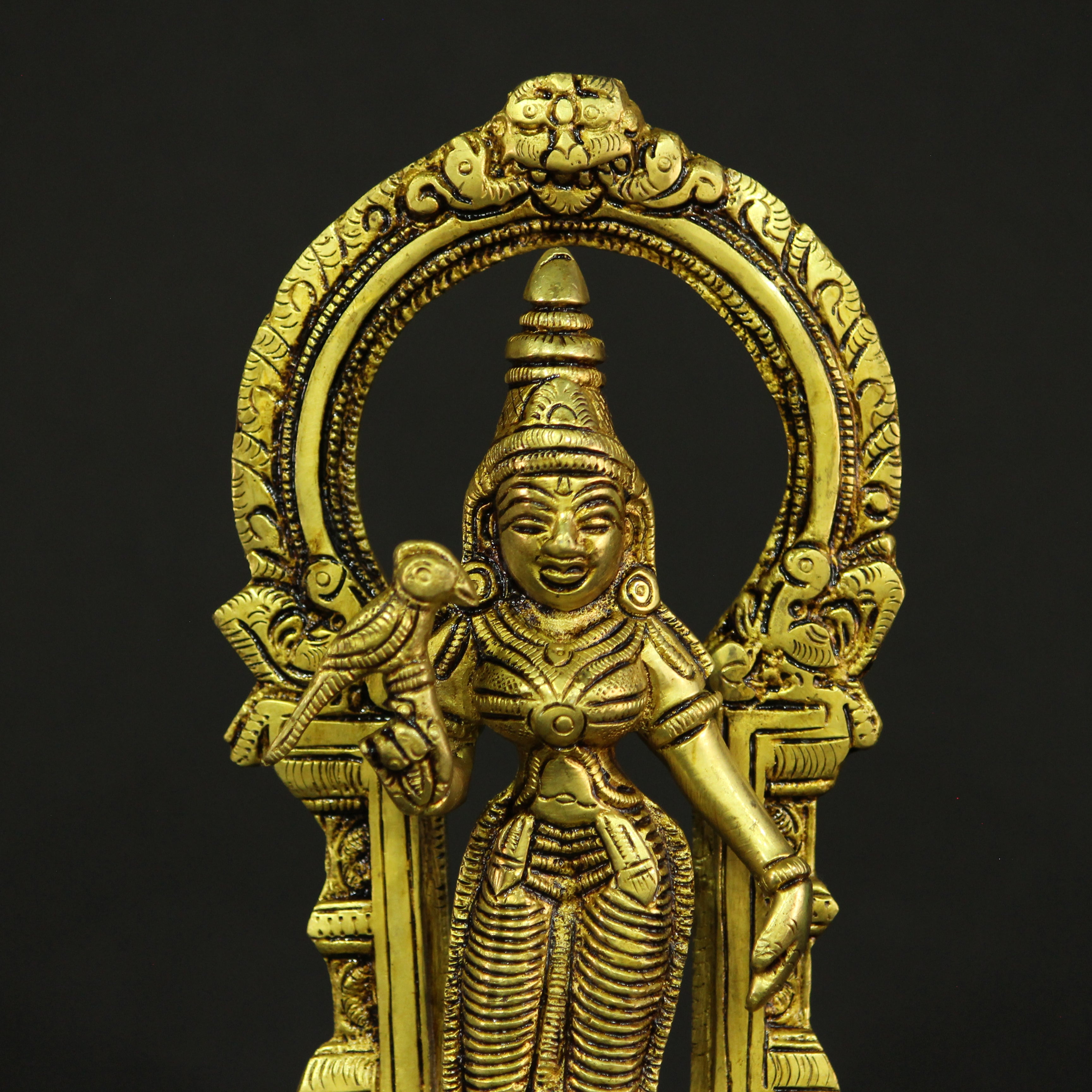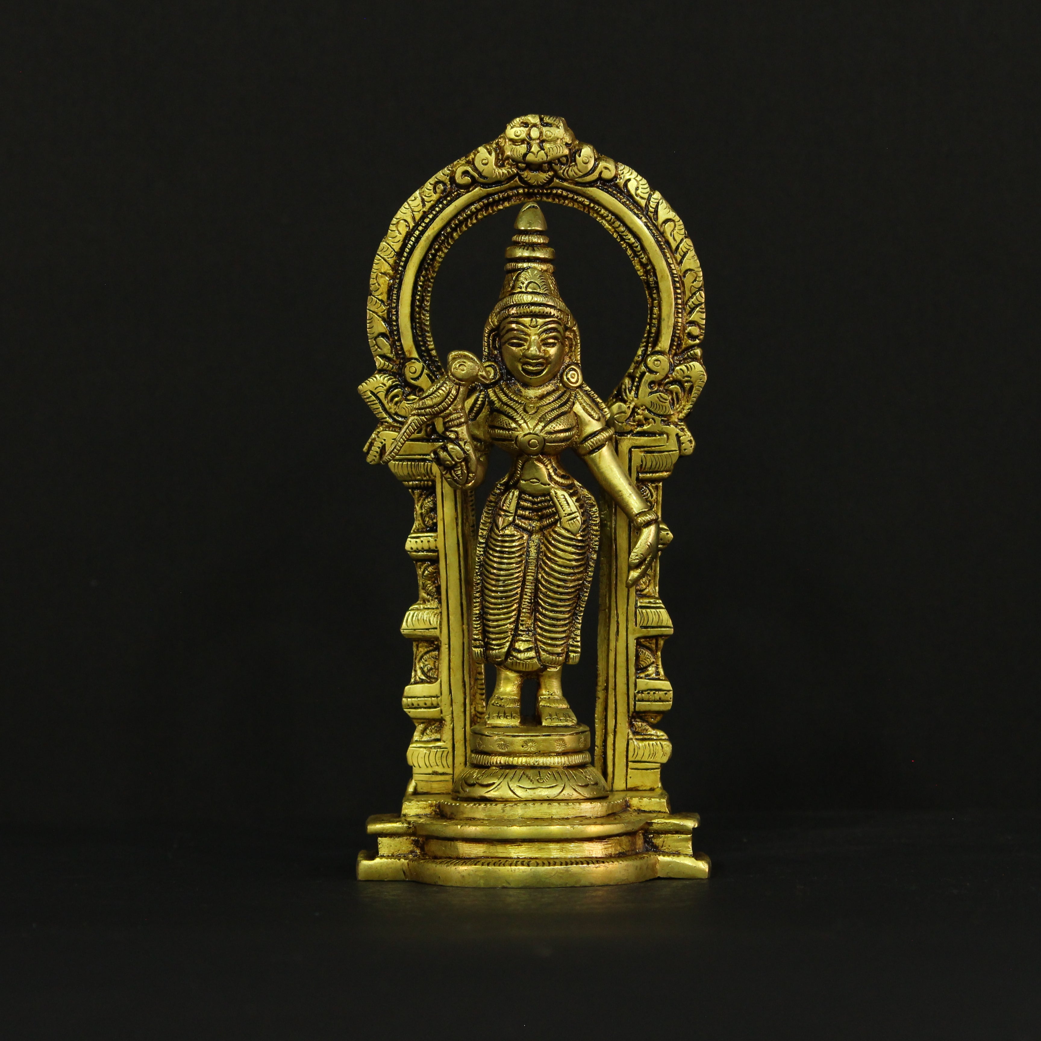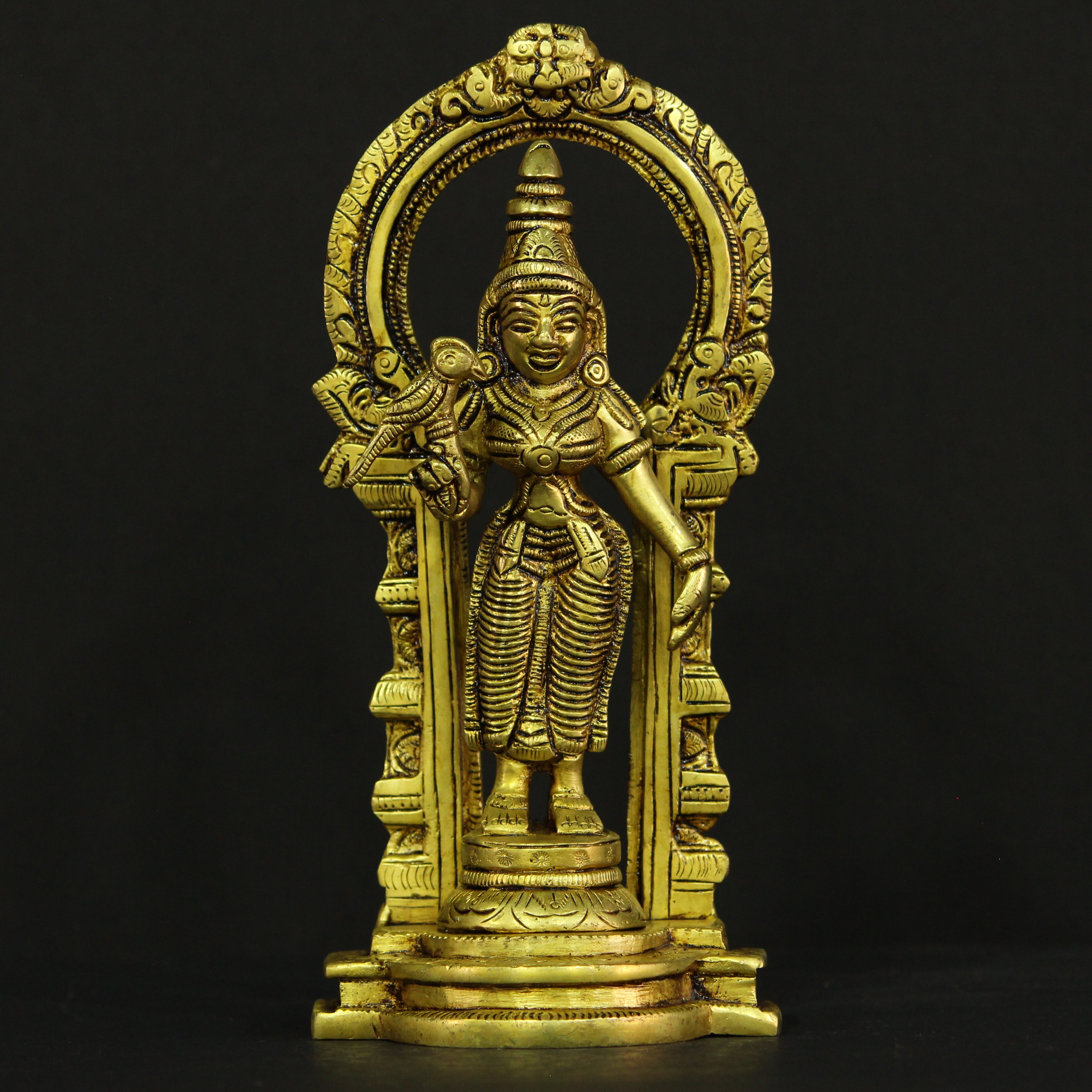 Add a touch of divine beauty and grace to your space with this stunning 8-inch brass Frame Meenakshi idol. Depicting the revered Goddess Meenakshi in a beautifully framed design, this idol captures her divine form, showcasing her elegance and strength. Known for her wisdom, compassion, and protective nature, Goddess Meenakshi is considered the embodiment of feminine energy and divine power. This intricately crafted idol is perfect for creating a sacred atmosphere in your home, office, or prayer room.