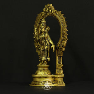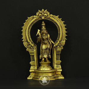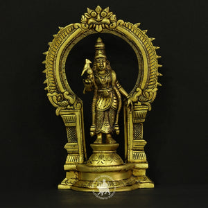 Enhance your spiritual space with the divine presence of Goddess Meenakshi through this stunning 11-inch brass Frame Meenakshi idol. Elegantly framed, this idol captures the divine grace, wisdom, and strength of Goddess Meenakshi, revered as the protector and nurturer of her devotees. Known for her beauty, intellect, and unwavering devotion, Meenakshi is a powerful symbol of feminine energy and divine energy. This exquisite piece adds a touch of elegance to any space, making it a perfect focal point for prayer rooms, altars, or your home decor.