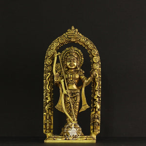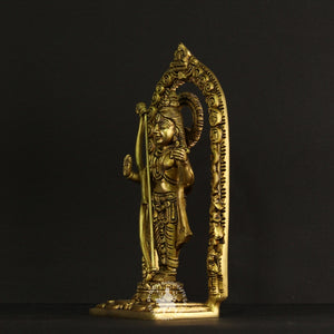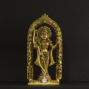 Welcome the divine presence of Lord Shree Ram, the epitome of righteousness, valor, and compassion, into your home with this beautifully crafted Brass Shree Ram Idol. Lord Ram, revered as the seventh avatar of Lord Vishnu, represents the ideal king, son, husband, and warrior. This intricately detailed brass idol captures the serene and noble stance of Lord Ram, holding his bow, symbolizing the victory of good over evil, truth over falsehood, and dharma over adharma.