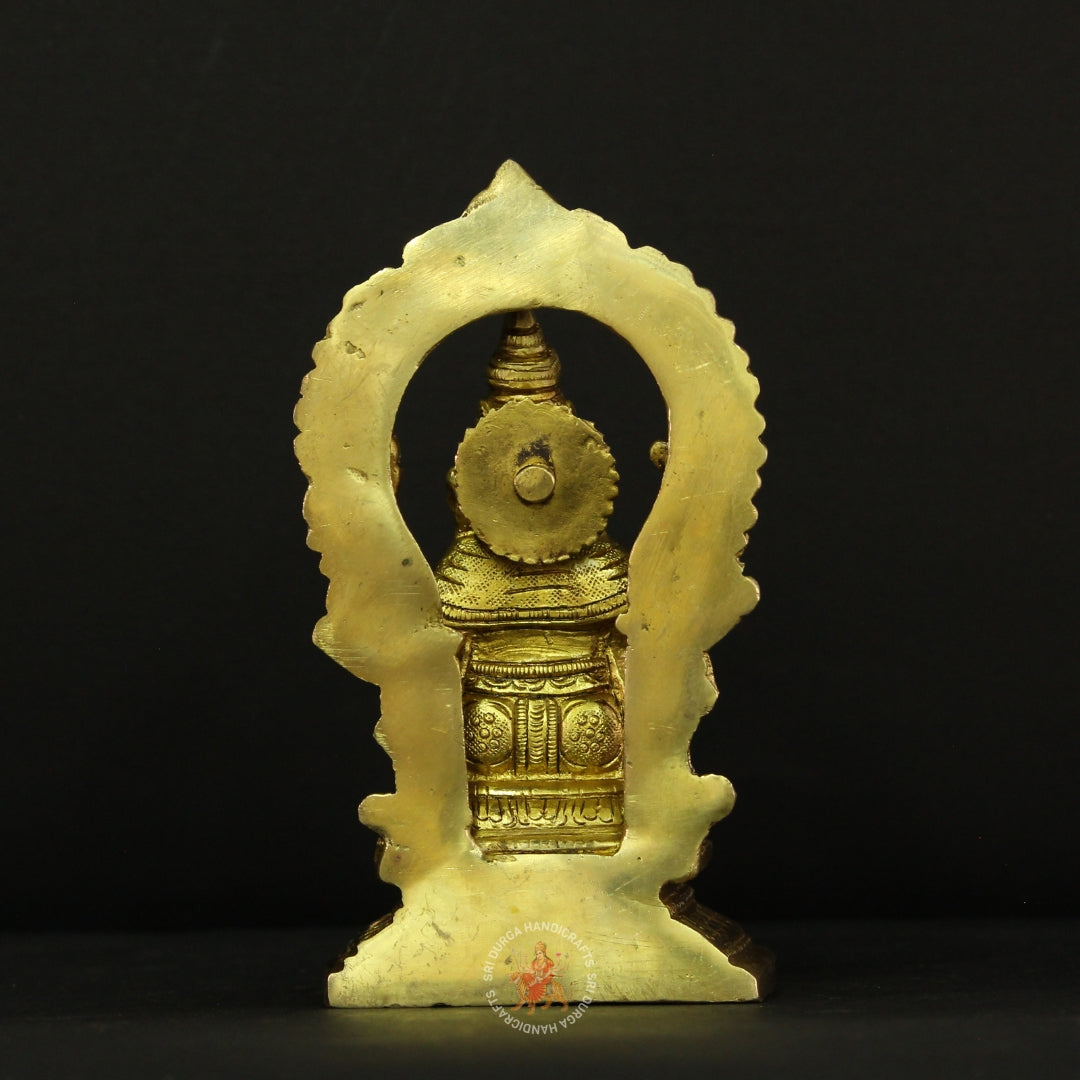 The intricate Thiruvatchi design not only enhances the spiritual essence of the idol but also represents the divine light that radiates from the deity, offering protection, positivity, and abundance to the surroundings. Crafted in fine brass, the idol reflects timeless craftsmanship, making it a perfect addition to your pooja room, meditation space, or as a centerpiece for spiritual décor.