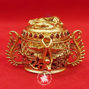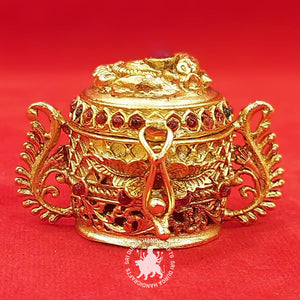 Design: The German Silver Annam Gift Box features a captivating motif of the Annam (Swan), a revered bird in Hindu mythology symbolizing purity and grace. The intricate detailing on the exterior of the box, including the Annam motif and other ornate patterns, reflects the depth of Indian artistry and symbolism. The hinged lid is adorned with a beautiful handle for easy access to the contents within.