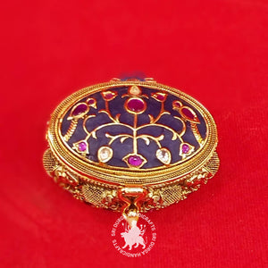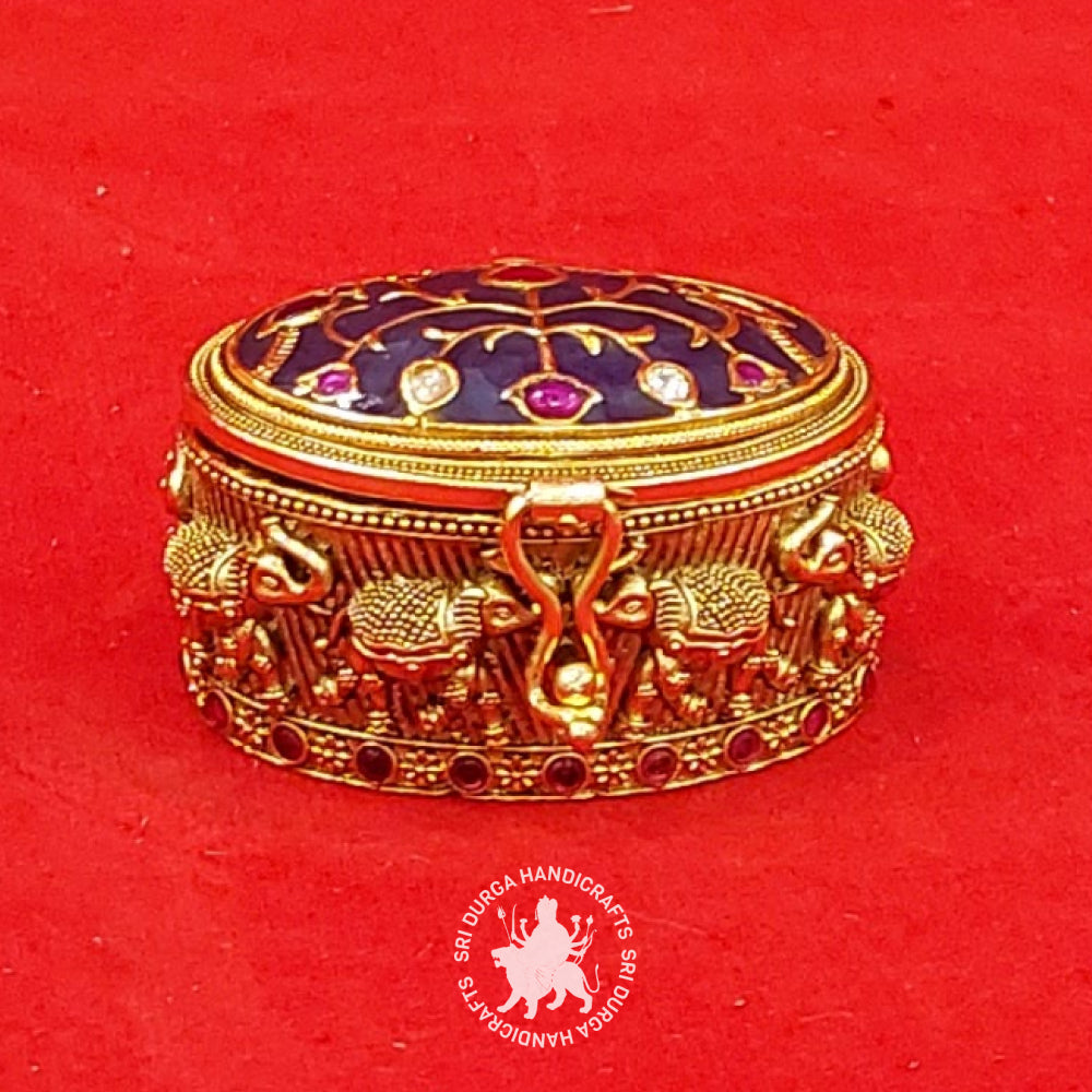 Material: Crafted from high-quality German silver, this Oval Stone Box showcases the timeless allure and silvery elegance of this alloy. German silver, known for its lustrous finish and durability, is an excellent choice for intricate designs and patterns. It ensures that this box remains a cherished addition to your collection for years to come.