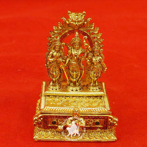 Design: The Seeta, Ramar, and Lakshmanan Set Gift Box features divine depictions of Lord Rama, Goddess Sita, and Lord Lakshmana, intricately etched on its lid. The intricate detailing captures the essence of devotion, love, and spirituality. The hinged lid is adorned with a small handle, enhancing both aesthetics and convenience in the design.