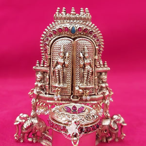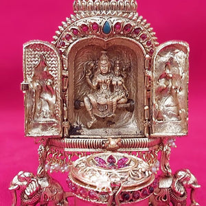 Celebrate the divine love and balance of Lord Shiva and Goddess Parvati with the German Silver Sivan Parvathi Box. Order this exceptional piece today and invite harmony, love, and spiritual blessings into your life, while adding elegance and charm to your sacred space or decor.