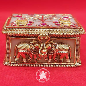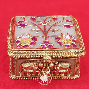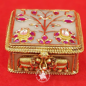 Craftsmanship: Our skilled artisans have poured their expertise and dedication into crafting this box, ensuring that it not only captures the beauty of its design but also embodies the richness of Indian culture and tradition. Each gemstone is meticulously placed, and every contour, motif, and detail is created with precision, showcasing the artisan's commitment to excellence.