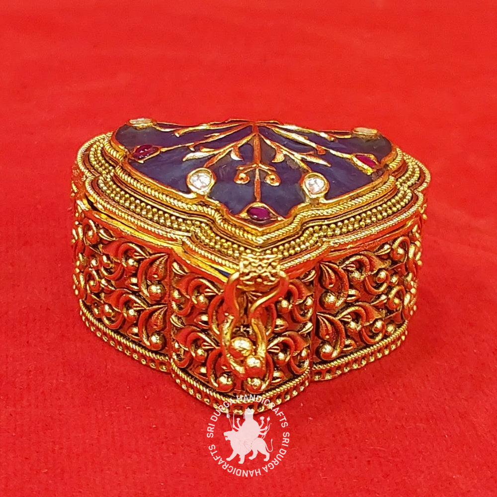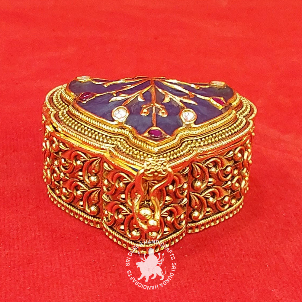 Craftsmanship: Our skilled artisans have poured their expertise and dedication into crafting this box, ensuring that it not only captures the beauty of its design but also embodies the richness of Indian culture and tradition. Each gemstone is meticulously placed, and every contour, motif, and detail is created with precision, showcasing the artisan's commitment to excellence.