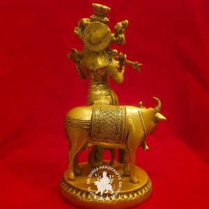 Introducing the enchanting 10-inch God Krishna with Cow Brass Idol – a beautiful representation of divine love, compassion, and serenity. Crafted with exquisite artistry, this stunning idol captures the essence of Lord Krishna, the protector of dharma, standing beside his cherished cow, symbolizing purity and nurturing.