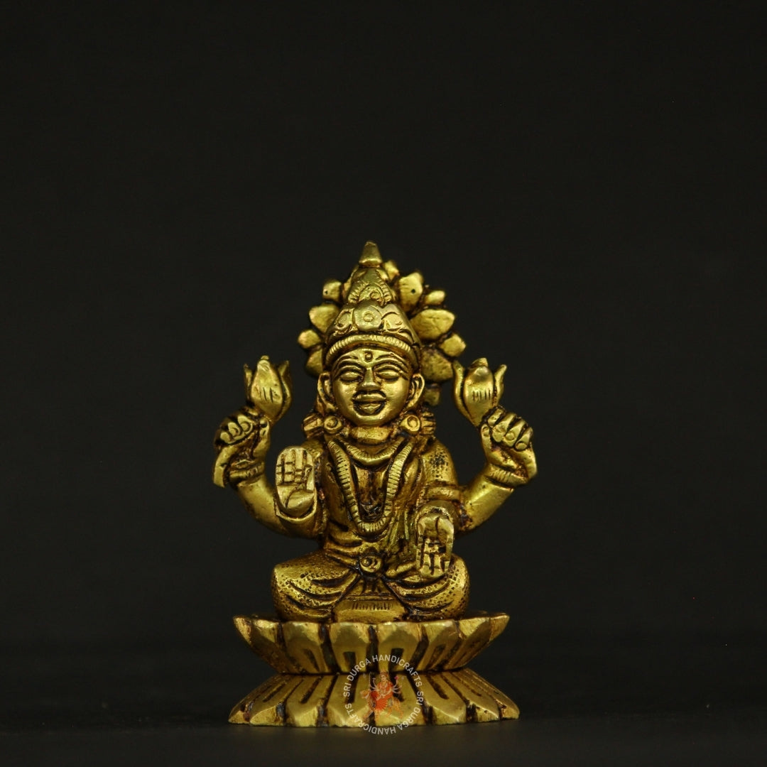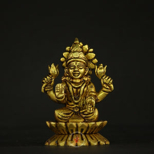 The blessings of Goddess Lakshmi, the goddess of wealth, fortune, and auspiciousness, into your home with this exquisitely crafted Brass Kamal Lakshmi Prosperity Idol. Depicted seated gracefully on a fully bloomed lotus (Kamal), this idol radiates purity, abundance, and spiritual growth. The lotus is symbolic of prosperity, purity, and enlightenment, representing the flourishing of material and spiritual wealth even amidst challenges.