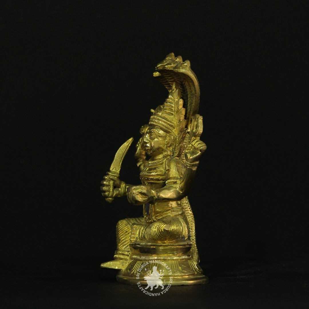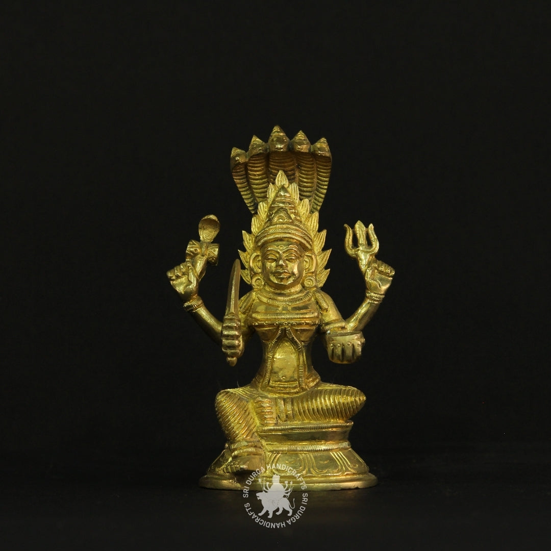 Embrace the divine strength and protection of Karumari Amman with this beautifully detailed 6-inch brass idol. Revered for her fierce protection and maternal love, Karumari Amman is considered a guardian deity who safeguards her devotees from harm and misfortune. This statue, with its exquisite craftsmanship, embodies the powerful essence of the goddess, making it a perfect addition to your puja room or spiritual space.