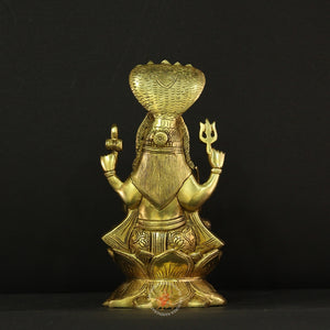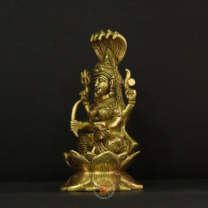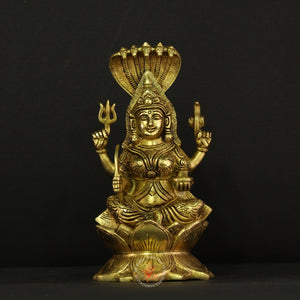 The divine blessings of Karumari Amman, the fierce yet compassionate guardian goddess, with this Graceful Brass Karumari Amman Idol. Known as the powerful form of Shakti, Karumari Amman is revered as the protector of villages, giver of fertility, rain, and abundance, and the remover of obstacles and diseases. This beautifully crafted brass idol captures her radiant presence with intricate detailing that reflects both her benevolence and commanding energy.