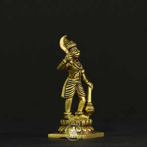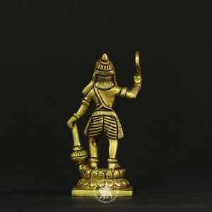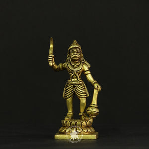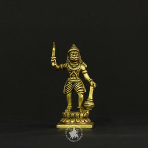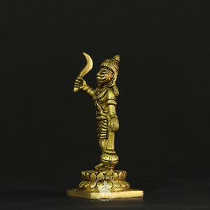 Honor the spirit of bravery and justice with this 5-inch Brass Madurai Veeran idol. Depicted in warrior stance, sword in hand, this folk deity guards homes and temples with unwavering vigilance. A must-have for those who revere Tamil heritage and divine guardianship.