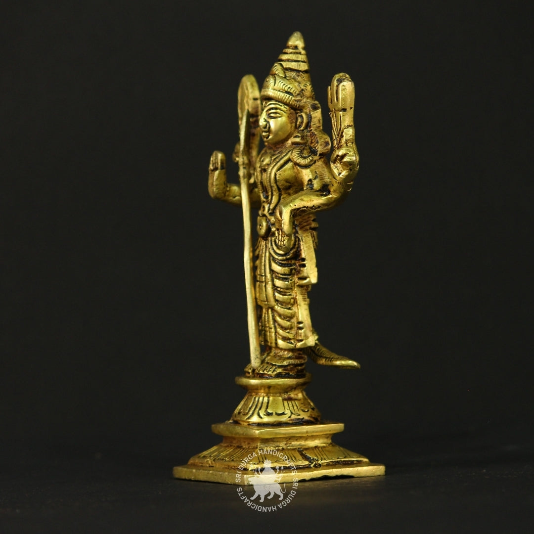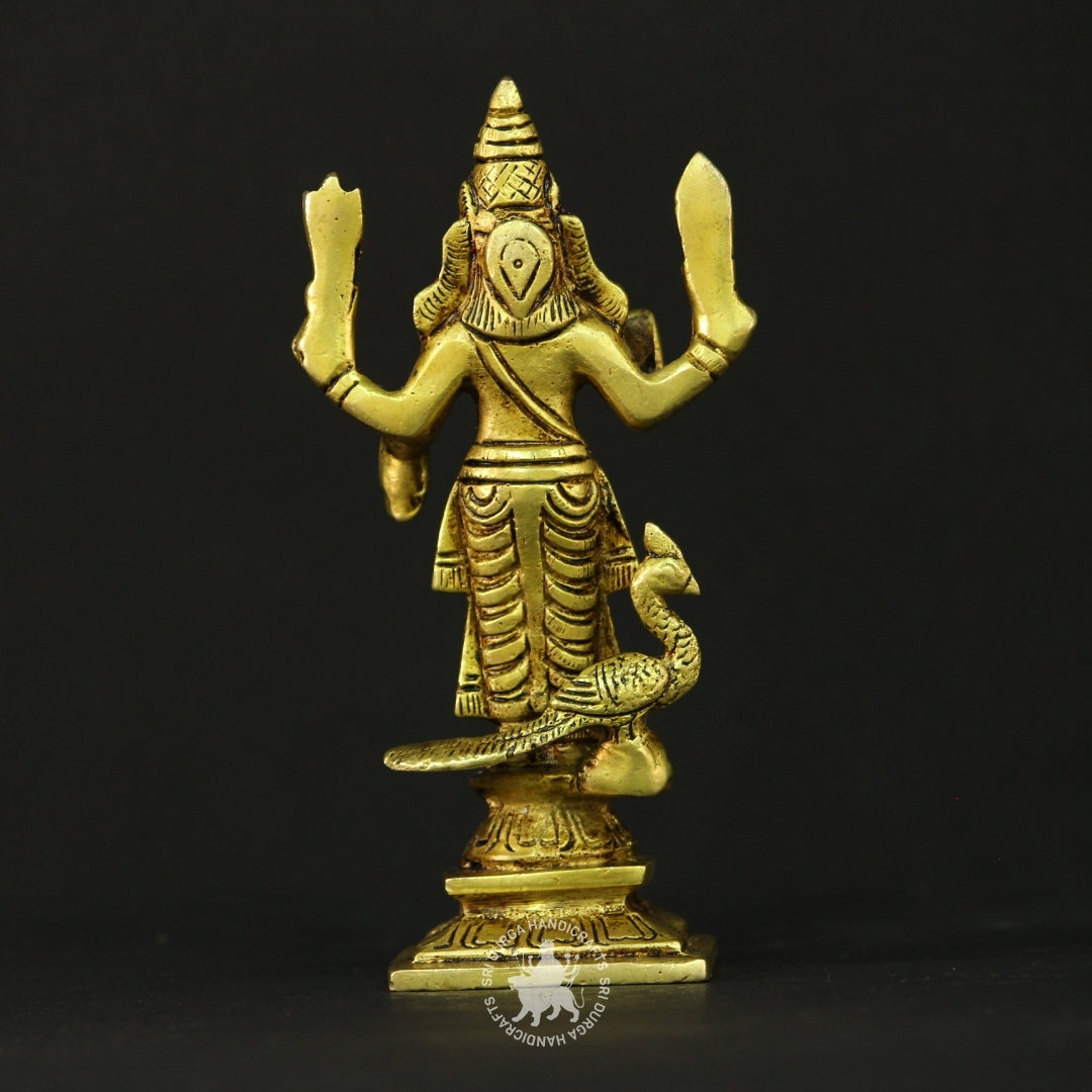 This 6-inch Murugan statue is a masterpiece of traditional brass craftsmanship. Each curve, texture, and ornament has been hand-carved by skilled artisans, capturing the deity’s grace and the peacock’s vibrant energy in solid brass.