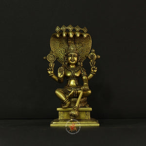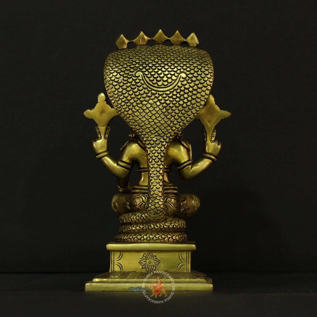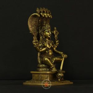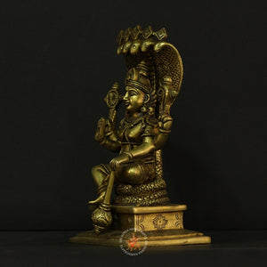 Bring home the divine blessings of Lord Vishnu, the Protector and Preserver of the universe, with this magnificent Lord Vishnu with Sheshnag Idol. Crafted with exceptional attention to detail, this idol beautifully portrays Lord Vishnu seated in a serene and regal posture, protected by the multi-headed Sheshnag (the divine serpent). Sheshnag, symbolizing infinity and eternal protection, adds a layer of mystic grace to this powerful idol, representing the vast cosmic energy that sustains the universe.