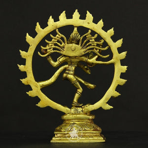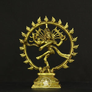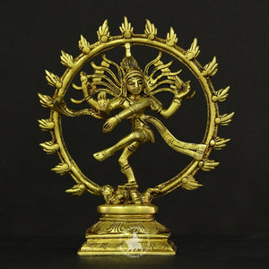 Celebrate the cosmic rhythm of creation and destruction with this powerful 8-inch brass Natarajar idol. Depicting Lord Shiva in his dynamic dancing form, this intricately crafted idol symbolizes the eternal cycle of time, energy, and balance in the universe. Perfectly sculpted in fine brass, the idol captures the vibrant motion, grace, and divine authority of Shiva as the Lord of Dance a must-have for any spiritual collection or sacred space.