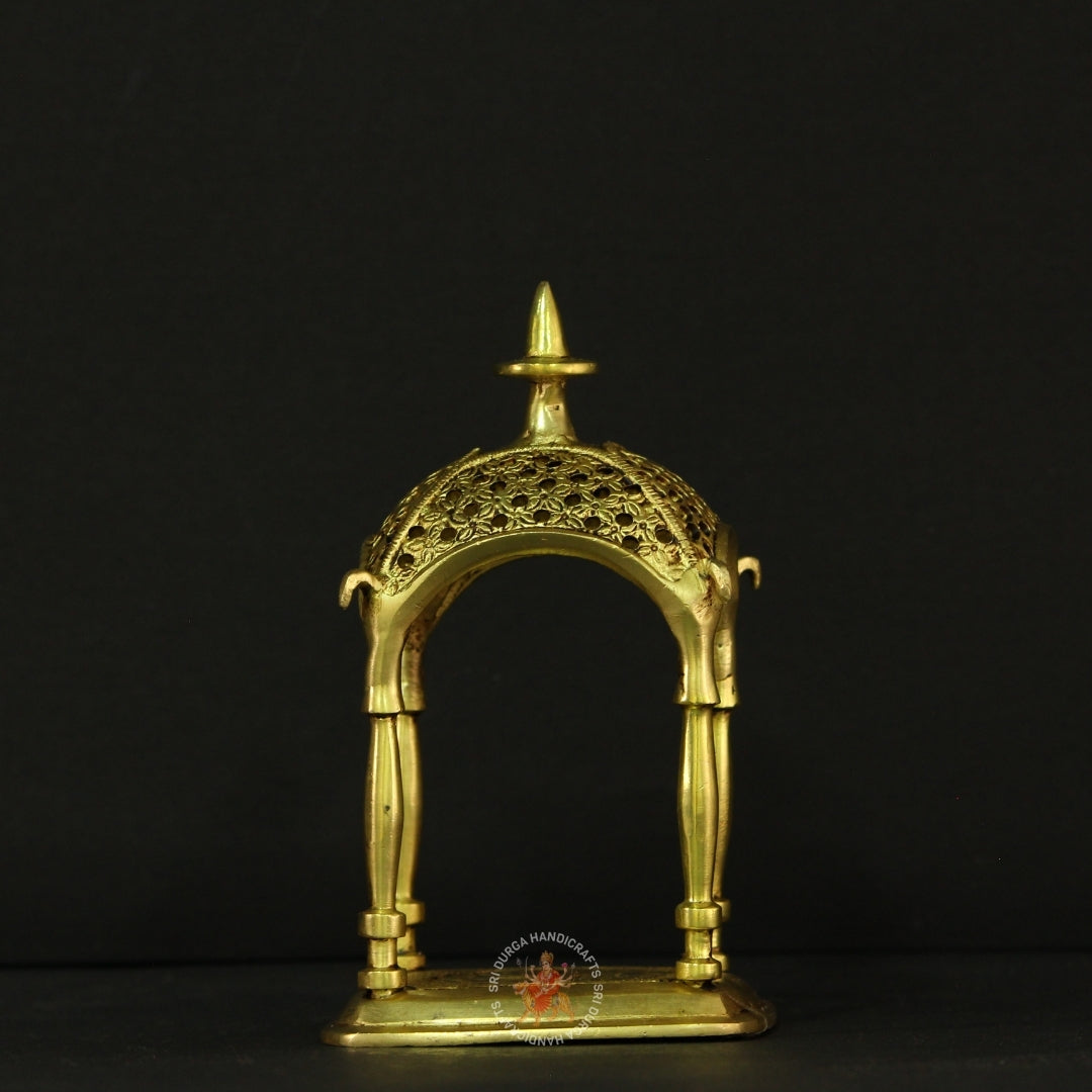 Bring home divine elegance and spiritual grace with the New Divine Brass Mandabam. This exquisitely designed brass mandabam (temple canopy) serves as a sacred representation of the divine abode, creating a serene space for your deities and spiritual practices. Crafted with intricate detailing, the Mandabam serves not only as a functional piece for placing idols but also as a stunning decorative accent in your temple or home altar.