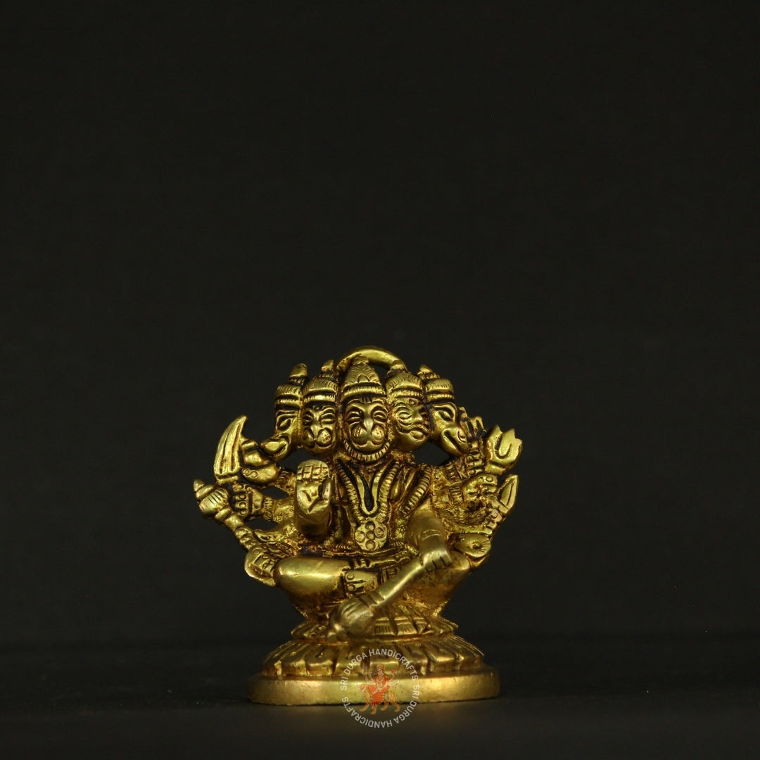 Unleash divine strength, protection, and courage with the Powerful Brass Panchamugam Hanuman Idol. This intricately crafted idol depicts Lord Hanuman in his mighty Panchamukhi (five-faced) form, symbolizing multifaceted divine powers and spiritual protection. Each face of this powerful form embodies different aspects of Hanuman’s divine nature, including strength, wisdom, devotion, and fearlessness, making it a potent spiritual centerpiece for any home or temple.