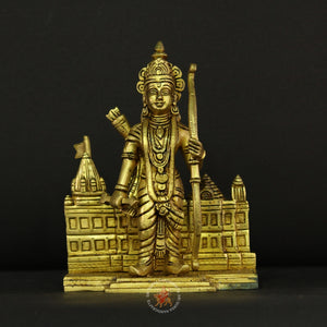 7" inch Brass Ramar Idol with Ayodhya Temple