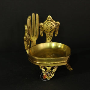 Intricate Craftsmanship: Painstakingly handcrafted by skilled artisans, the Sangu Chakaram Namam Vilakku is a testament to the fine artistry and attention to detail. The lamp showcases the divine Sangu Chakaram, representing Lord Vishnu's divine conch and discus, and the sacred Namam, a mark worn by devotees.