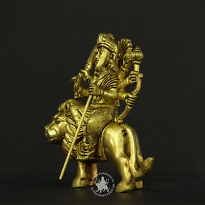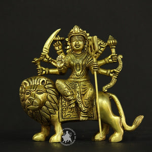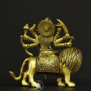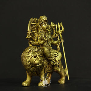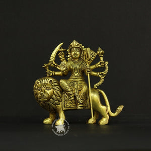 Channel divine strength and fearless protection into your home with this intricately crafted 5-inch brass Simma Durgai idol. Representing Goddess Durga in her powerful lion-riding form, Simma Durgai embodies courage, justice, and the destruction of evil forces. This finely detailed brass idol captures her fierce energy and protective nature, making it a perfect addition to your puja space or as a spiritual safeguard in your living area.